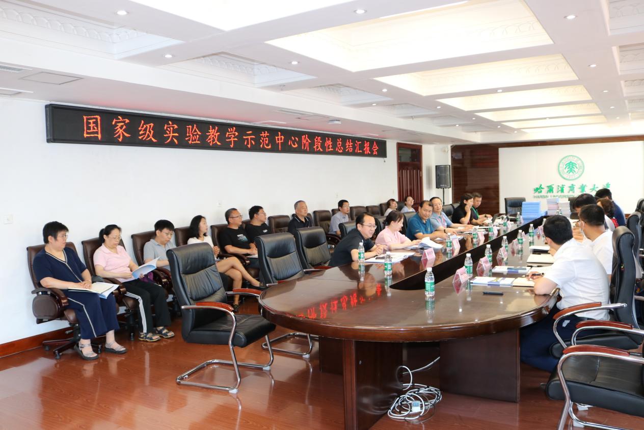 在国家级实验教学示范中心阶段性总结汇报会上,我校校长郑秋鹛致辞,副校长王巍汇报我校国家级实验教学示范中心整体管理和运行情况及经济管理国家级实验教学示范中心(哈尔滨商业大学)阶段性总结情况。教学实验设备管理中心副主任章刘成主持工作会。