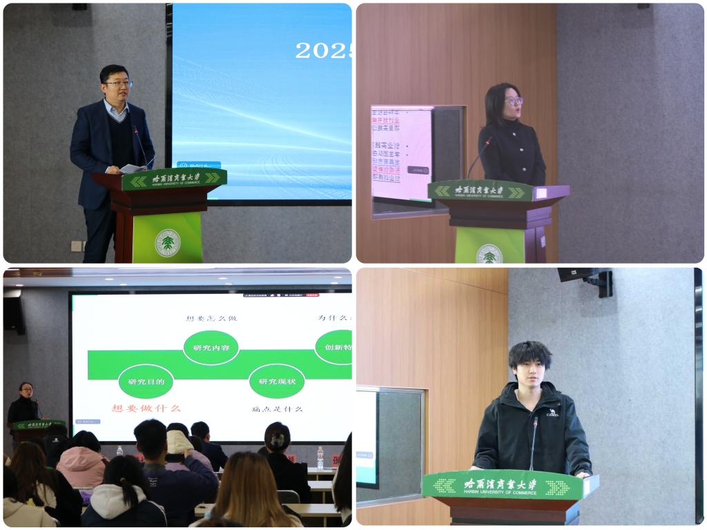 创业实践项目团队代表曹玉超同学以项目成果为脉络,分享了团队从立项到实践的全过程心路历程。他通过自身经历展现了青年学子在创新实践中的探索精神与责任担当,以“敢于挑战、勇于实践”的感悟激励在场同学积极投身双创实践,生动呈现了我校大创项目对学生创新能力培养的实际成效。