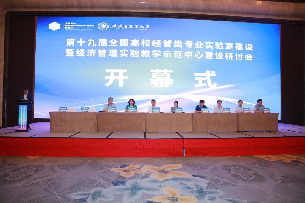 8月24日至26日,由国家级实验教学示范中心联席会经济与管理学科组主办、哈尔滨商业大学承办的第十九届全国高校经管类专业实验室建设暨经济管理实验教学示范中心建设研讨会在哈尔滨召开。教育部高教司实验室处处长高东锋,黑龙江省教育厅副厅长王淑云,黑龙江省教育厅高教处处长蒋鲲,国家级实验教学示范中心联席会副秘书长、北京大学实验室与设备管理部副部长周勇义,国家级实验教学示范中心联席会经管学科组组长、山东大学商学院院长戚桂杰,大会创始人、中国信息经济学会名誉理事长、中国人民大学信息学院教授陈禹等专家、学者出席会议。哈尔滨商业大学校长郑秋鹛在开幕式上致辞,副校长程伟主持开幕式并做主题报告。