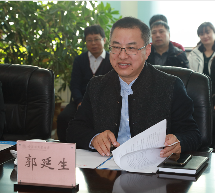 郭延生在讲话中指出,新道科技股份有限公司主要从事为高校教育服务,致力为高等商科教育模式改革和变革服务,为商科教学打造场景服务推动商科教学变革。新道科技和哈尔滨商业大学的合作历史悠久,成果斐然。今后将与商大一起携手并肩,在教学场景改变、专业共建、工管一体化实训平台研发、新商科探索以及共享服务中心等方面进一步合作,共同推动和促进商科院校教育模式改革向纵深发展,为国家创新型战略的实施培养更多创新创业型高素质人才。