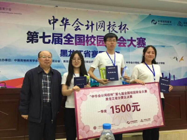 决赛分为财务决策竞赛、财会情景纠错和财税知识问答三个部分进行。由陈家俊、任添瑛、韩巍巍组成的我校代表队参加黑龙江省决赛。参赛队员通过熟练地操作、果断的决策和通力的配合,以财务决策和财会情景纠错两个环节第一名并最终总分最高的成绩获得了“中华会计网校杯”第七届全国校园财会大赛黑龙江省赛区复赛的本科生组第一名(一等奖)。我校代表队还将代表黑龙江省出战全国总决赛,预祝我校参赛队员在全国总决赛中取得优异的成绩。