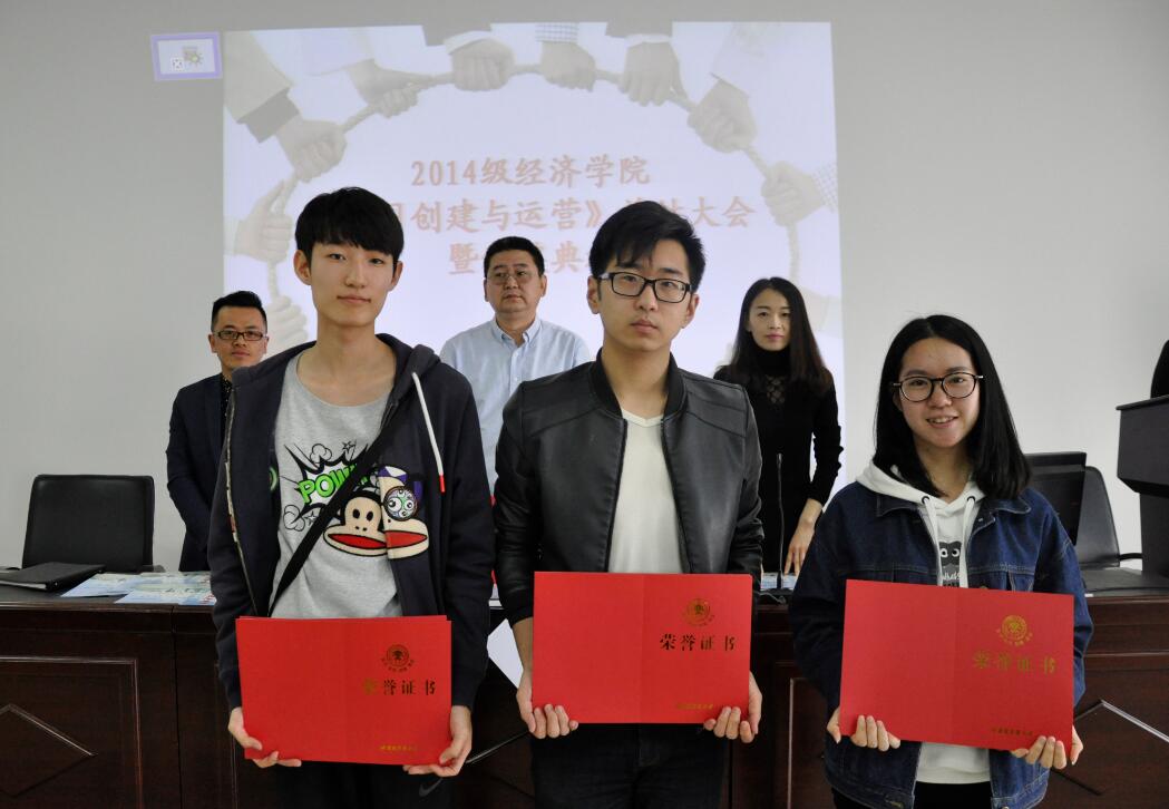 实习总结暨颁奖大会于4月21日在我校经管综合实践中心举行,教学实验设备管理中心副主任鲁啸军教授对经济学院同学的优秀表现给予了高度肯定,经济学院于文武老师对经管实践中心老师的辛勤付出表示衷心的感谢,并对同学们取得的优异成绩表示祝贺,并与经管综合实践中心的赵莉老师一同为优秀团队和个人颁发了获奖证书,王天琦、李宇飞、张文等三名同学作为优秀团队代表发表了获奖感言。