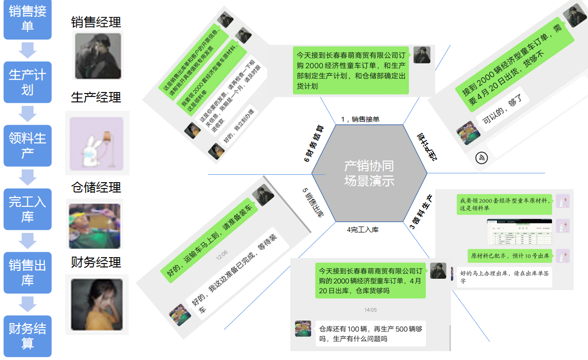 作为VBSE跨专业综合实训课的授课教师,姚春艳和公大勇老师在中心领导的带领和指导下,在V综开课前通过微信、电话等方式发出教学指令,帮助学生做好线上开课准备,提前做好ARE模块的学生分组和线上上岗工作、VBSE的课前预习工作,提前做好在新道ARE和VBSE系统上创建教学班级、调试和选择直播平台等工作。开课第一周,V综教学团队选择钉钉作为直播平台,使用新道VBSE和ARE教学系统线上授课,对学生们进行在线讲解、在线答疑。在为期一周的线上授课时间里,姚春艳和公大勇老师按照教学大纲和授课计划,完成了ARE虚拟仿真教学平台单元四企业运营的线上教学和任务操作;使用钉钉会议和微信等方式完成了VBSE跨专业综合实训课的线上实习动员,公司CEO竞选、选举、员工招聘等线上团队组建工作,带领各家公司在线上完成了期初建账、固定经营任务,并且指导学生在自主经营阶段进行了激烈公司运营比赛。“采购、生产、销售”,“开拓市场、竟单、投广告”,“稽查、报税、贷款、转账”,“雇佣工人、扩大生产、制定经营策略”等等,这一波又一波的企业真实业务流程和操作,让学生们在家就深刻体验到职场紧张又活泼的工作氛围。每家公司都在你争我赶,CEO带领团队成员加班加点,微信群里经常是晚上九点、十点还能看见大家在讨论问题,同学们热情高涨,完全沉浸在职场工作的新奇、刺激和乐趣中。在课程最后一天的总结环节中,大家都纷纷表达了“真想再签几单生意”、“这五天真的是体验到职场”、“工作很辛苦但是有乐趣”、“如果再来一次我会这样做...”、“收获了创建公司的经验”等等。