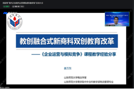 山东师范大学商学院梅谷学堂创新部主任娄万东做了题为《教创融合式新商科双创教育改革—《企业运营与模拟竞争》课程教学经验分享》的报告,主要介绍了山东梅谷学堂和新商科双创教育发展,以及开设《企业运营与模拟竞争》课程的体会与经验,为高校开展《企业运营与模拟竞争》课程提供了思路和解决方案。