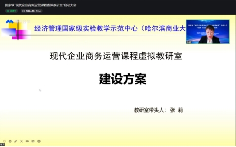 张莉教授介绍了“现代企业商务运营课程虚拟教研室”建设方案,包括指导思想,建设目标、建设内容及近两年的工作计划,旨在通过教研室活动创新高校基层教学组织的运行模式和机制,打造新型基层教学组织的组织形式,共建共享现代企业商务运营优质教学资源平台。