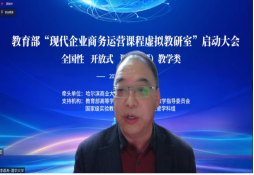 王巍副校长在致辞中首先对教育部“现代企业商务运营课程虚拟教研室”成立表示热烈地祝贺,向大力支持和帮助哈尔滨商业大学的各级组织、兄弟院校和同仁表示衷心地感谢。他介绍了近几年哈尔滨商业大学的发展情况和取得的成效,“现代企业商务运营课程虚拟教研室”能够成功获批教育部首批虚拟教研室建设试点,是学校深化实践教学改革所取得的标志性成果之一。他表示学校将进一步整合资源,为教研室的建设提供支持和保障,用实际行动贯彻落实教育部工作要求,为推动建设高质量教育体系做出贡献。他还指出,在未来建设中,教研室应以习近平新时代中国特色社会主义思想为指导,探索新型基层教学组织的建设路径、运行模式,共建现代企业商务运营课程教学优质资源共享平台,引导教师回归教学、热爱教学、研究教学,打造“以课为基,以赛促教,以赛促建,赛教结合”的协同育人新机制。