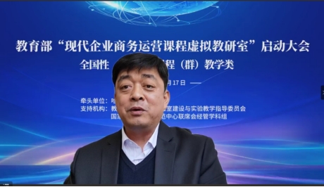 2022年4月17日,教育部“现代企业商务运营课程虚拟教研室”启动大会在“云端”召开。本次大会由哈尔滨商业大学主办,教育部实验室建设与实验教学指导委员会和国家级实验教学示范中心联席会经管学科组支持。出席会议的嘉宾有:哈尔滨商业大学副校长王巍教授,教育部高等学校工程训练教学指导委员会副主任委员、教育部工程创客虚拟教研室带头人、清华大学基础工业训练中心主任李双寿教授,教育部高等学校实验室建设与实验教学指导委员会秘书长、虚拟仿真实验教学创新联盟副秘书长、东南大学实验室与设备管理处处长熊宏齐教授,国家级实验教学示范中心联席会经管学科组组长、教育部高等学校管理科学与工程教学指导委员会委员、山东大学商学院院长戚桂杰教授,国家级实验教学示范中心联席会经管学科组副组长、国家级经管实验教学示范中心(湖北经济学院)主任任晓阳教授,教育部“现代企业商务运营课程虚拟教研室”带头人、教育部高等学校实验室建设与实验教学指导委员会委员、国家级实验教学示范中心联席会经管学科组副组长、哈尔滨商业大学教学实验设备管理中心主任张莉教授,以及来自170多所高校的致力于“现代企业商务运营课程虚拟教研室”建设的教师代表。会议由哈尔滨商业大学教务处处长徐耀群主持。