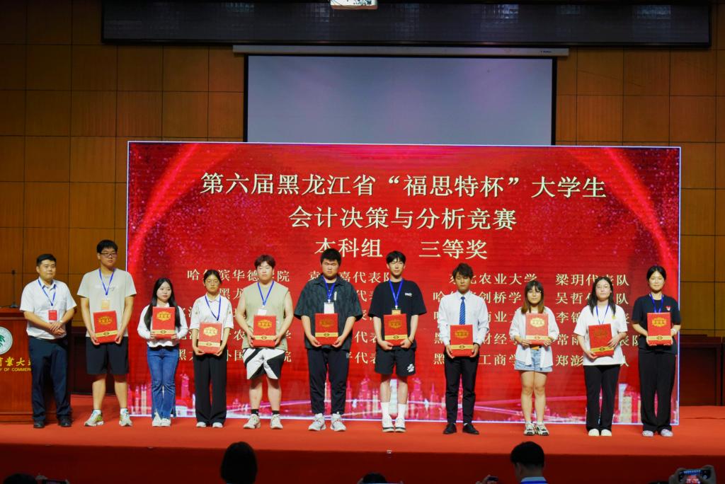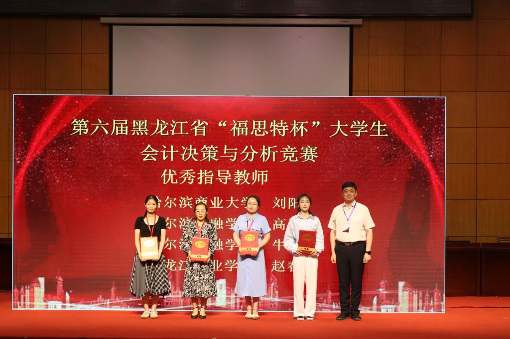黑龙江省教育厅高教处主任刘洋为获奖团队颁奖